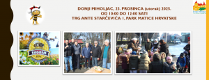 Tradicionalno druženje s medarima u organizaciji udruge pčelara "Bagrem", održati će se u utorak, 23. prosinca 2025. godine na Trgu Ante Starčevića, Park Matice hrvatske u vremenskom razdoblju od 10:00 do 12:00 sati. Pozivamo drage sugrađane, goste i naše najmlađe na zajedničko druženje uz medne proizvode; medenjake, med i badnjakovaču.