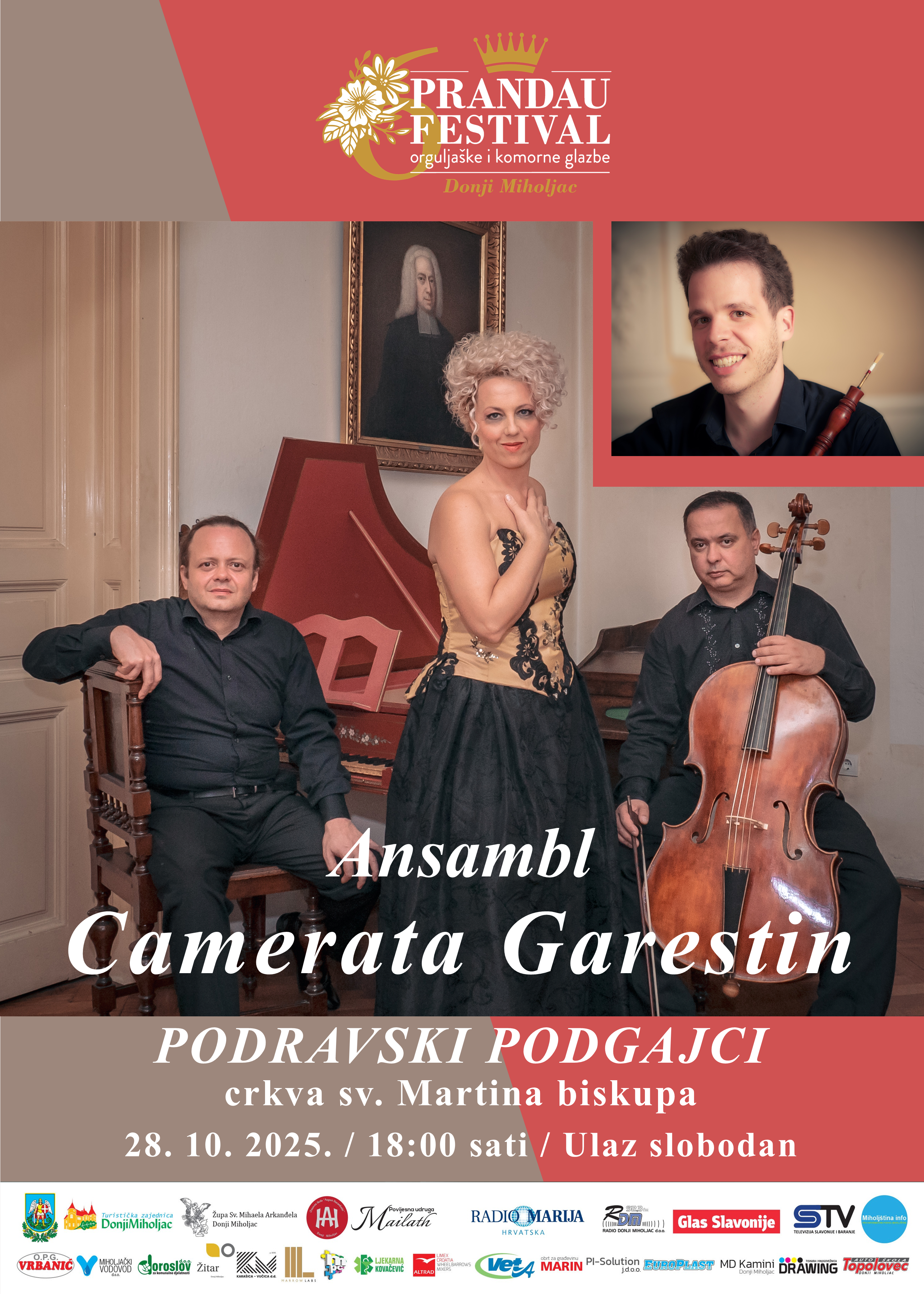 Ansambl CAMERATA GARESTIN iz Varaždina održat će koncert zatvaranja 6. PRANDAU FESTIVALA u župnoj crkvi sv. Martina biskupa u Podgajcima Podravskim, u utorak 28. listopada 2025. godine s početkom u 18,00 sati, po prvi puta s programom festivala izvan Donjeg Miholjca, ulaz slobodan.